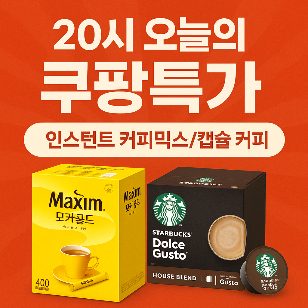 ☕ 20시 오늘의 쿠팡특가 — 인스턴트 커피믹스/캡슐 커피 (맥심 모카골드, 스타벅스 돌체구스토 팩)