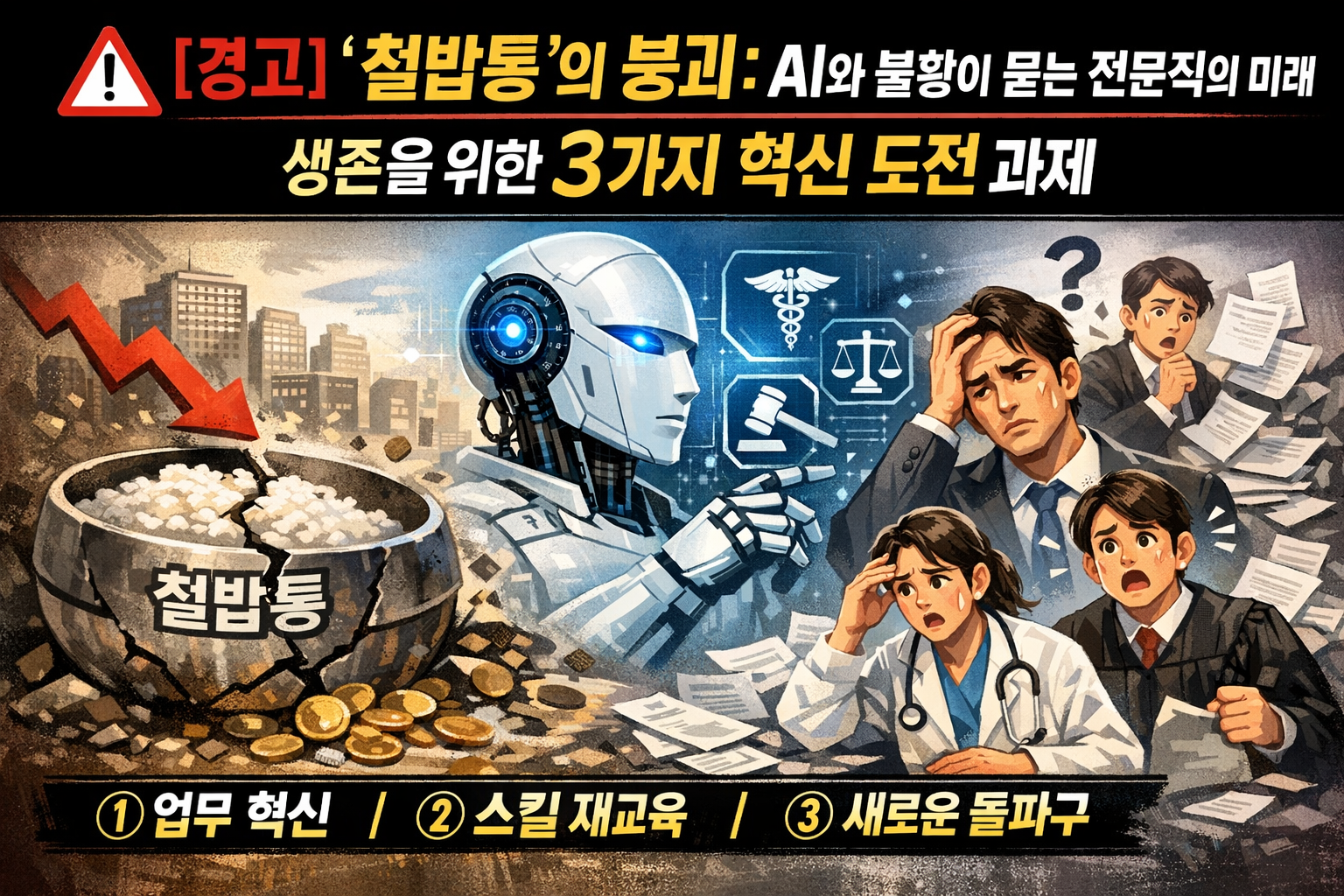 [경고] '철밥통'의 붕괴: AI와 불황이 묻는 전문직의 미래, 생존을 위한 3가지 혁신 도전 과제
