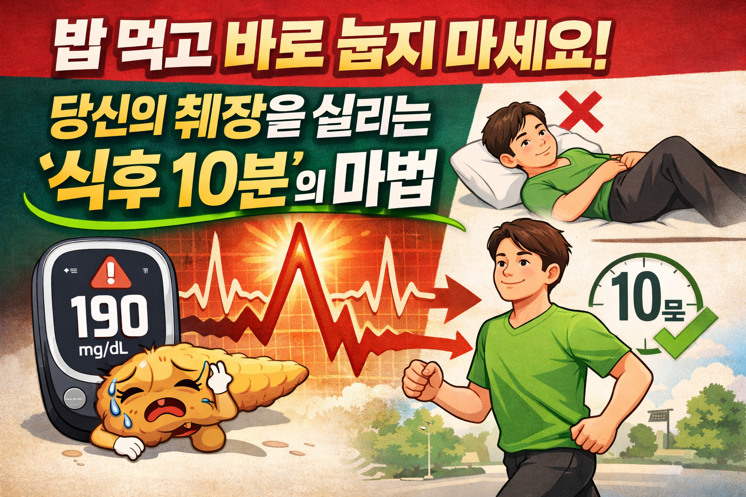 [혈당 스파이크] "밥 먹고 바로 눕지 마세요! 당신의 췌장을 살리는 '식후 10분'의 마법"