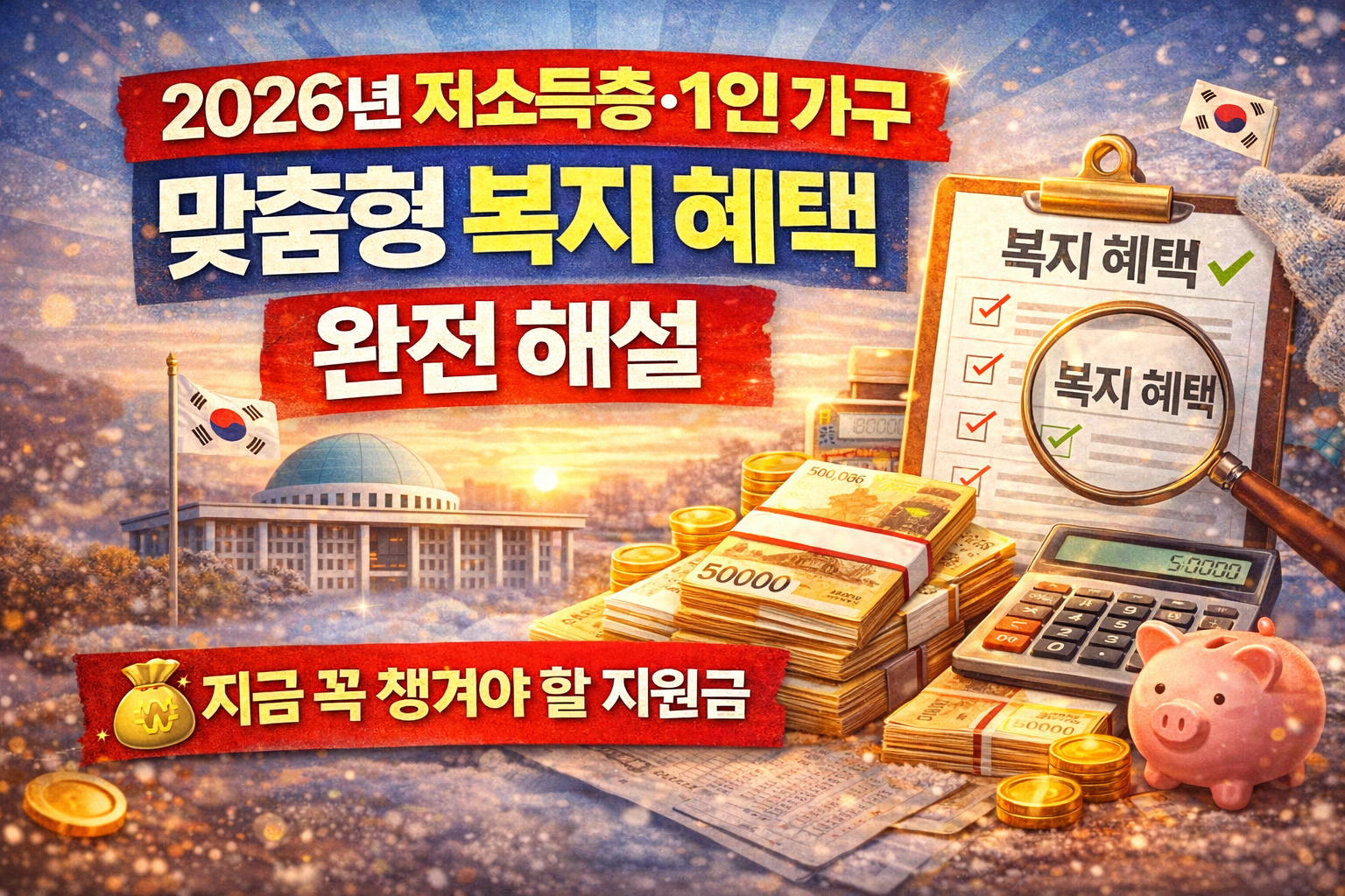 혼자 사는 분들은 생활비 부담이 특히 큽니다. 그래서 정부는 2026년부터 1인 가구 맞춤형 복지를 별도 운영합니다.