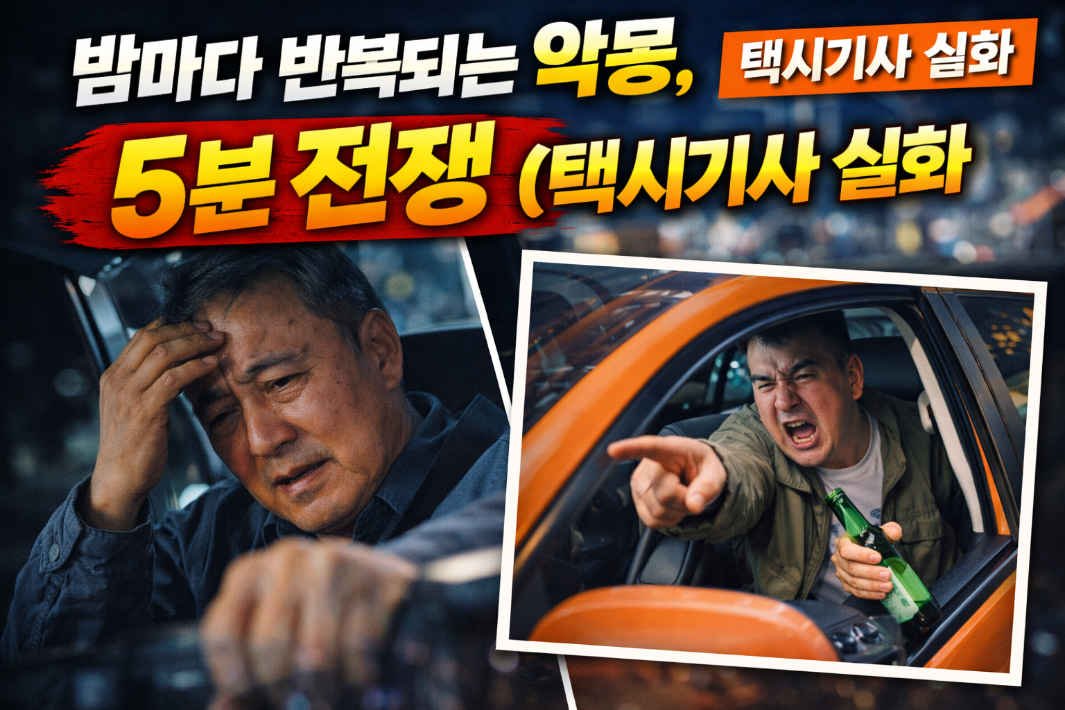 안녕하세요, 필로그스입니다. 오늘은 택시기사님들의 입에서 자주 나오는 한마디, “요즘은 손님이 무서워요.” 그 말 속엔 단순한 하소연이 아니라, 밤마다 반복되는 두려움이 숨어 있습니다. 오늘은 한 기사님이 직접 겪은 그날의 ‘5분 전쟁’을 실화로 전해드립니다.
