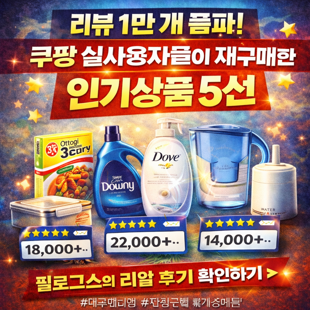 리뷰 1만 개 돌파! 쿠팡 실사용자들이 재구매한 인기상품 5선
