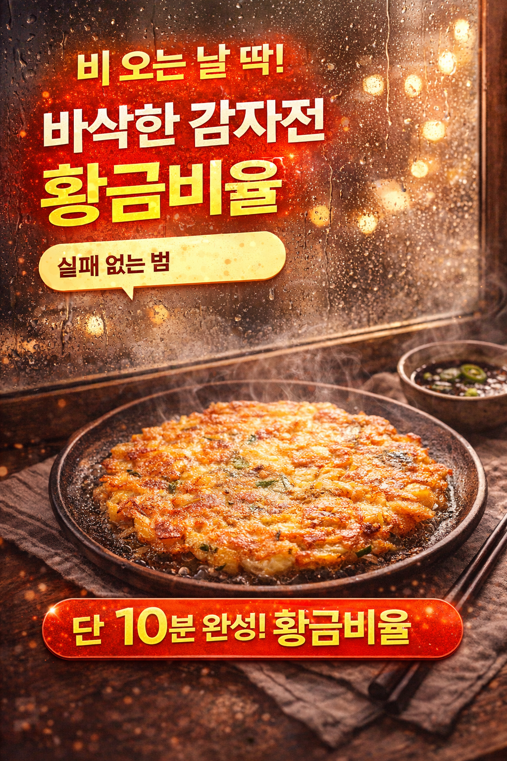 비 오는 날 감자전이 맛있는 이유는 기름 튀는 소리의 주파수가 빗소리와 유사하기 때문이에요. 뇌는 이 소리를 들으면 ‘따뜻한 위로’를 느끼죠. 그래서 오늘 같은 날, 감자전 한 장이 유난히 위로가 되는 겁니다.