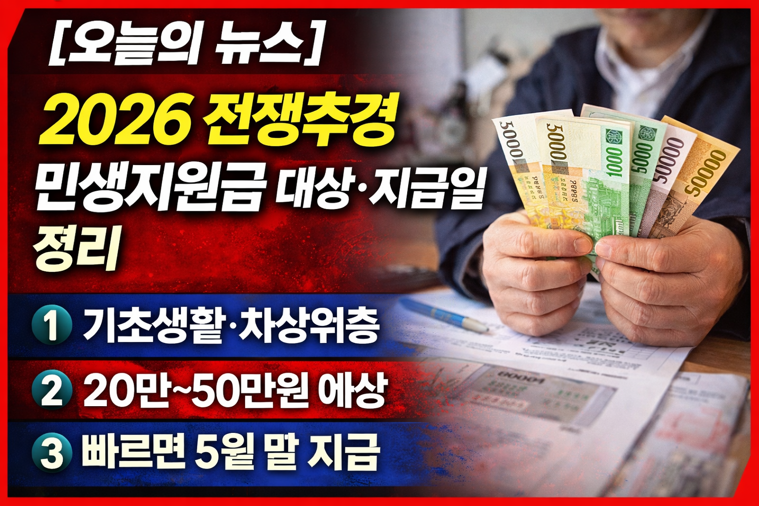 [오늘의 뉴스] 2026 전쟁추경 민생지원금 총정리|기초생활수급자 대상자·지급일 완벽 정리