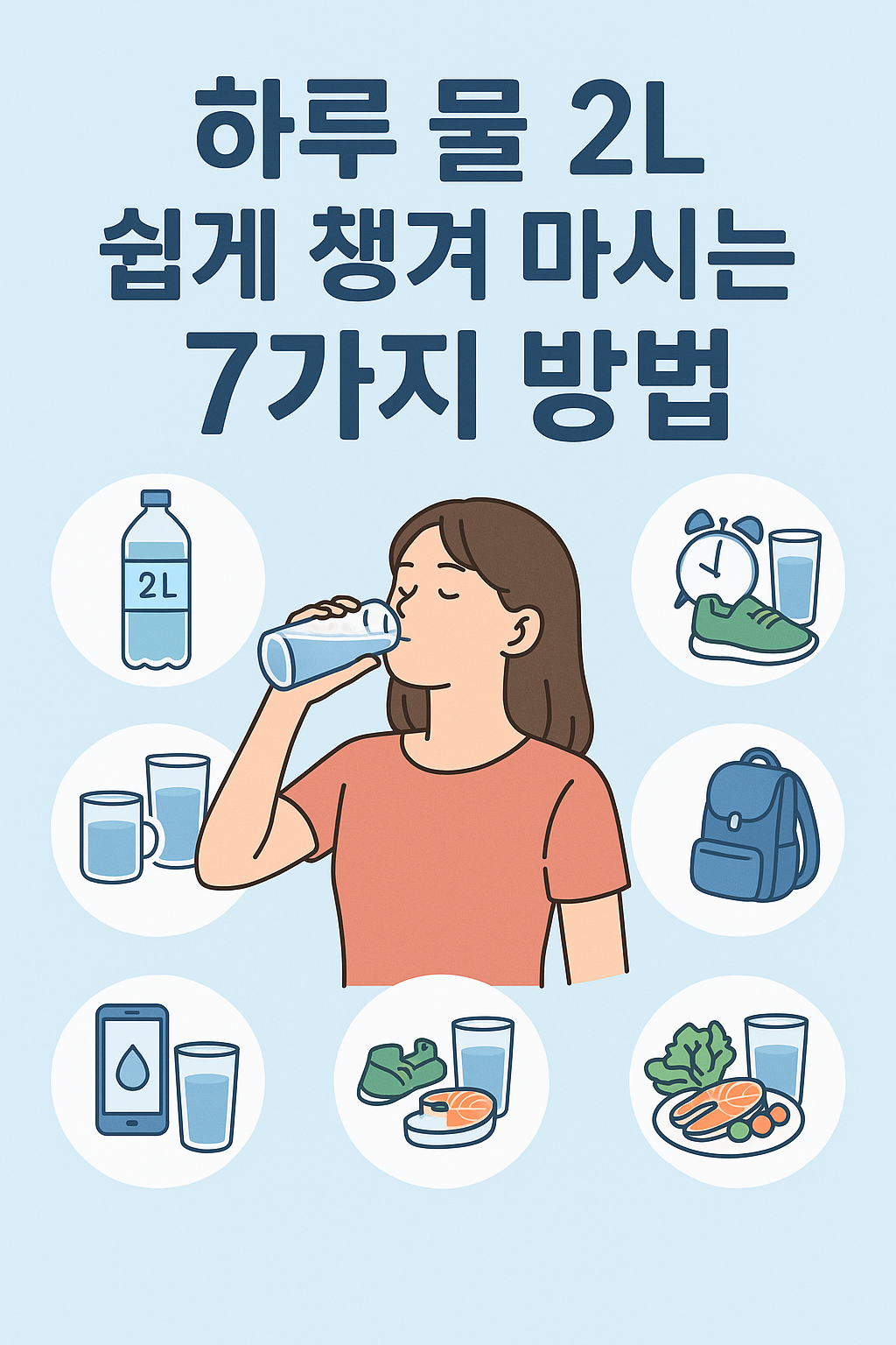 물 2리터, 말은 쉽지만 매일 챙겨 마시는 건 생각보다 어렵습니다. 그러나 습관만 잘 들이면, 자연스럽게 몸이 먼저 물을 찾게 되는데요. 오늘은 하루 물 2L를 ‘쉽고 자연스럽게’ 마시는 7가지 실천법을 소개해드립니다