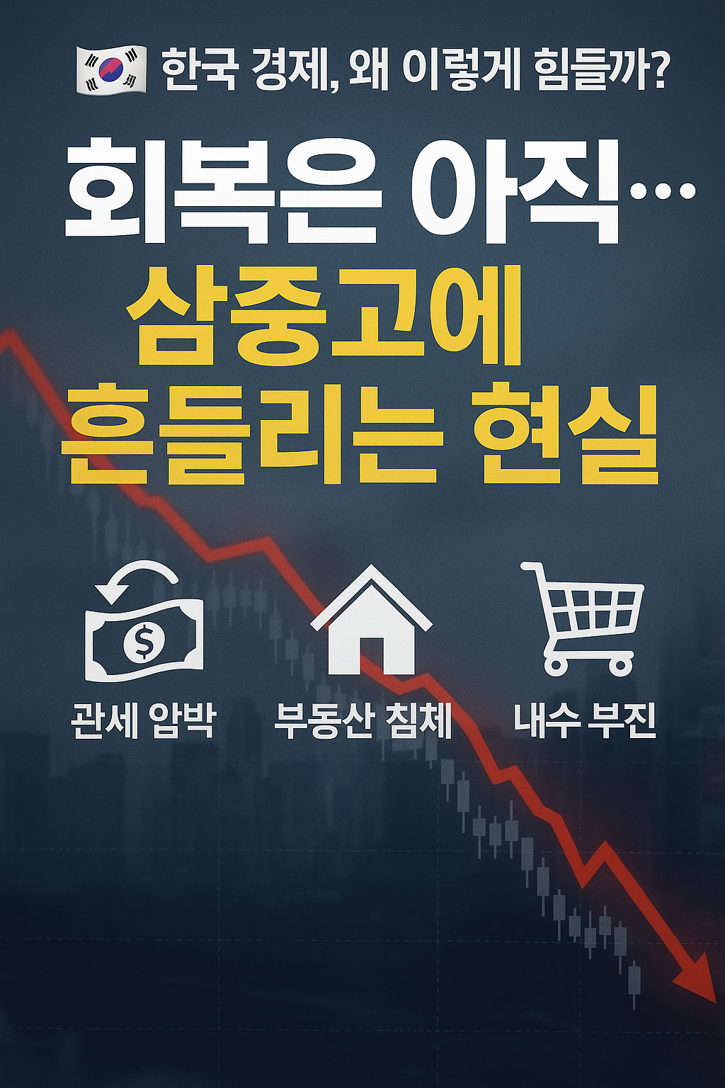 한때 전 세계가 주목했던 ‘K-경제’. 코로나19 팬데믹 속에서도 상대적으로 빠른 회복을 보이며 선진국 못지않은 회복력을 보여줬던 한국 경제는, 이제 그 반대의 길을 걷고 있습니다. 세계경제의 불확실성과 내부 구조적 문제들이 맞물리며 ‘관세 압박’, ‘부동산 침체’, ‘내수 부진’이라는 삼중고에 시달리고 있습니다.