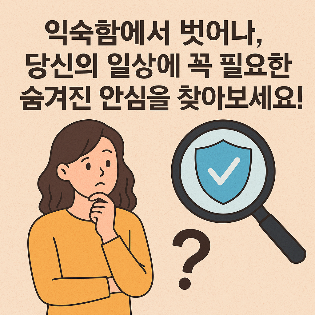 “익숙함에서 벗어나, 당신의 일상에 꼭 필요한 숨겨진 안심을 찾아보세요!”